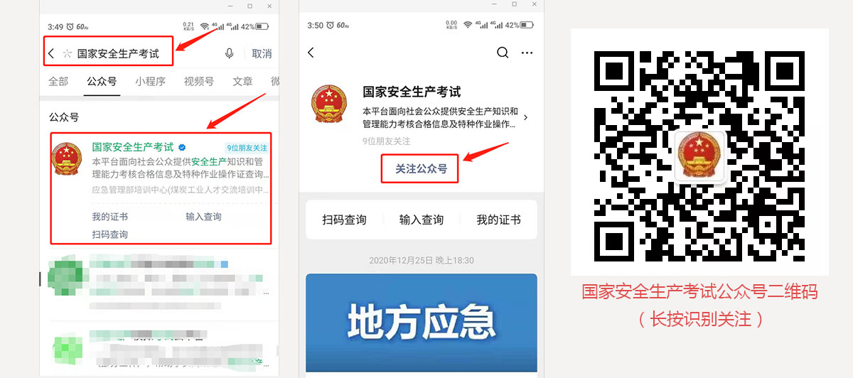 獲取新版證書的電子證書可通過(guò)微信公眾號(hào)“國(guó)家安全生產(chǎn)考試”或應(yīng)急管理部官網(wǎng)兩種方式查詢下載。