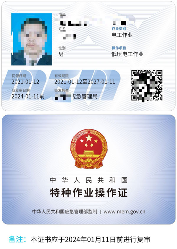 四川應(yīng)急管理廳(原安監(jiān)局):電工證-低壓-高壓,熔化焊接與熱切割作業(yè)-焊工證,電力電纜,繼電保護(hù),電氣試驗(yàn),防爆電氣作業(yè),高處安裝維護(hù)拆除作業(yè),登高架設(shè)作業(yè),制冷與空凋設(shè)備運(yùn)行操作作業(yè),制冷與空凋設(shè)備安裝修理作業(yè),施工吊裝作業(yè),施工挖裝作業(yè),危化品負(fù)責(zé)人/管理人員,危化品從業(yè)人員上崗證,新辦,(審證,換證,3年一審,6年一換)特種作業(yè)人員必須經(jīng)專門的安全技術(shù)培訓(xùn)并考核合格,取得《中華人民共和國特種作業(yè)操作證》(以下簡稱特種作業(yè)操作證)后,方可上崗作業(yè)。